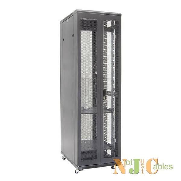 42RU Server Cabinet 800mm Deep Front Mesh Door, Rear Mesh Double Doors, 2x150mm Vertical Cable Trays 2x Fixed Shelves, 2x 6 Way Power distribution unit, bolt down kit, 25x cage nuts & 4x castors