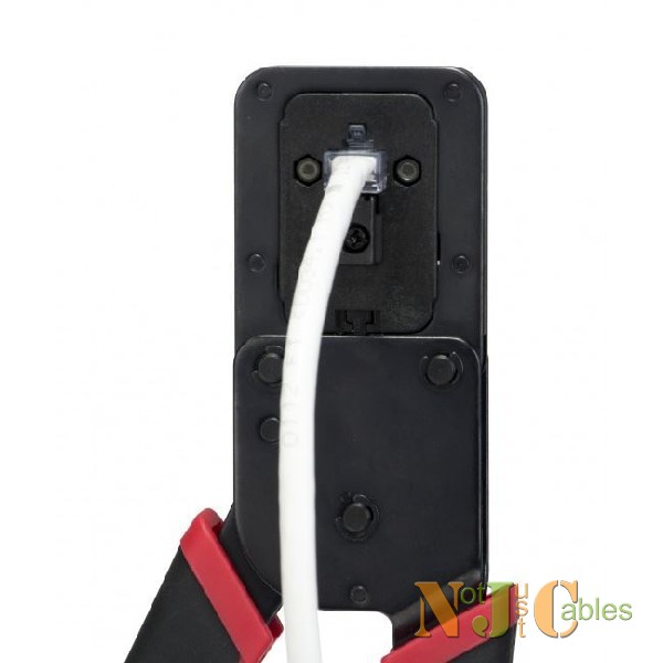 The patented EXO Crimp Frame® with EXO-EX Die™ was developed to terminate larger cables and conductors (typically Cat6/6A). EXO Crimp Frame with EXO-EX Die™ is designed for the ezEX-RJ45® connectors. The ezEX-RJ45 connectors are an RJ45 pass-through connector, developed for larger cables and conductors. Integrated Hi-Lo stagger for improved performance, one-piece design pass through the system. The EXO Crimp Frame has a patented push button lock, ergonomic TPR handles and works with the EZ-RJ45® Die for terminating EZ-RJ45 connectors.